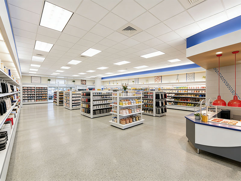 • Comercial y minorista: Durable and attractive finish for supermarkets, restaurants, and schools.
