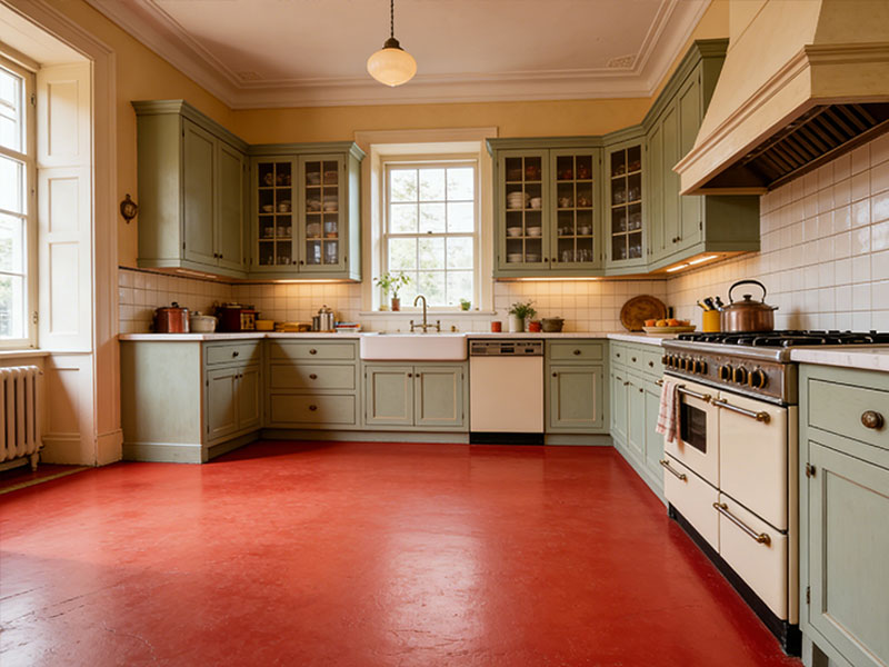 Maintenance is simple. Regular sweeping and occasional damp mopping with a neutral pH cleaner are usually sufficient. The seamless, non-porous surface does not require waxing or stripping. Avoid harsh acidic cleaners to preserve the topcoat.