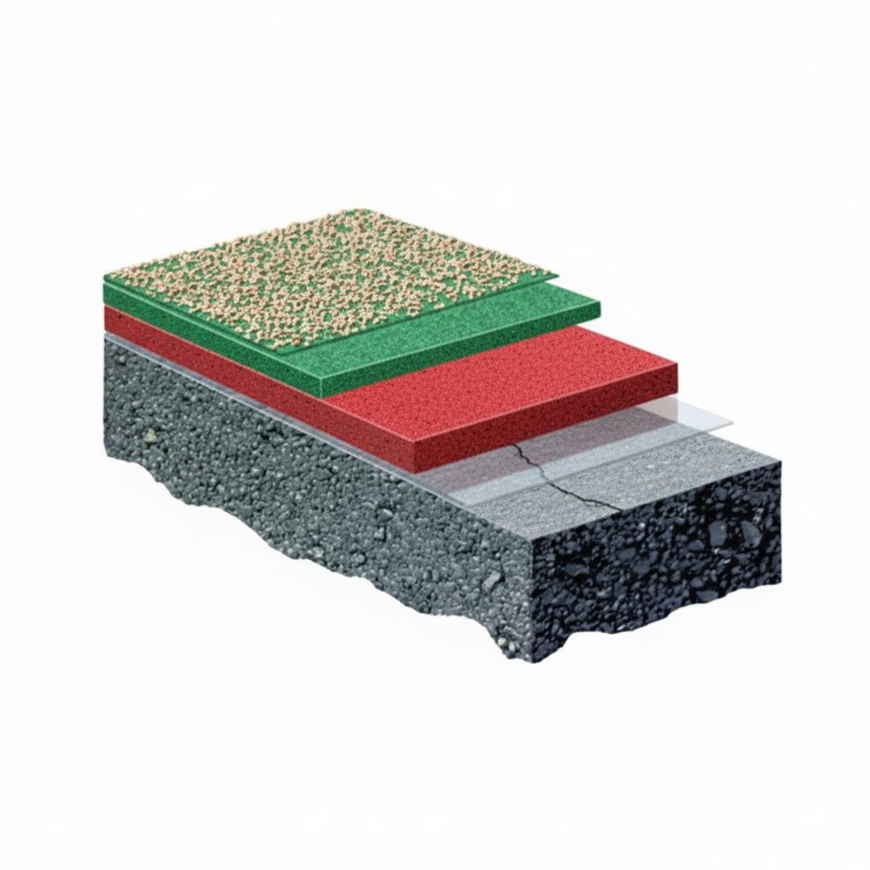 The final DurAcryl™ topcoat provides the wear surface, determines final appearance, and may incorporate specialized properties such as enhanced chemical resistance or UV stability. Applied by roller or squeegee, the topcoat flows to a smooth, uniform finish. Color pigments are integrally mixed, ensuring consistent color throughout the coating thickness without fading or chalking.
