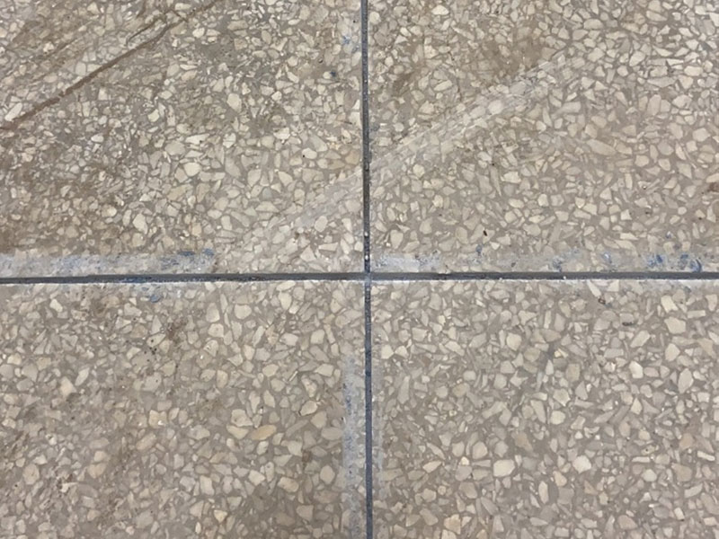 Сеть глубоких трещин и разломов в изношенном эпоксидном полу, вызванных движением подложки, термоциклированием или сильным ударом.