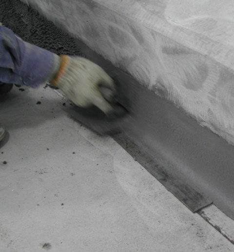 Грунтовка наносится шпателем. Обычно достаточно одного слоя, в то время как при плохом состоянии основания требуется два слоя. Одновременно полиуретановый раствор на водной основе используется для заполнения пустот на поверхности, создавая механические крепления.